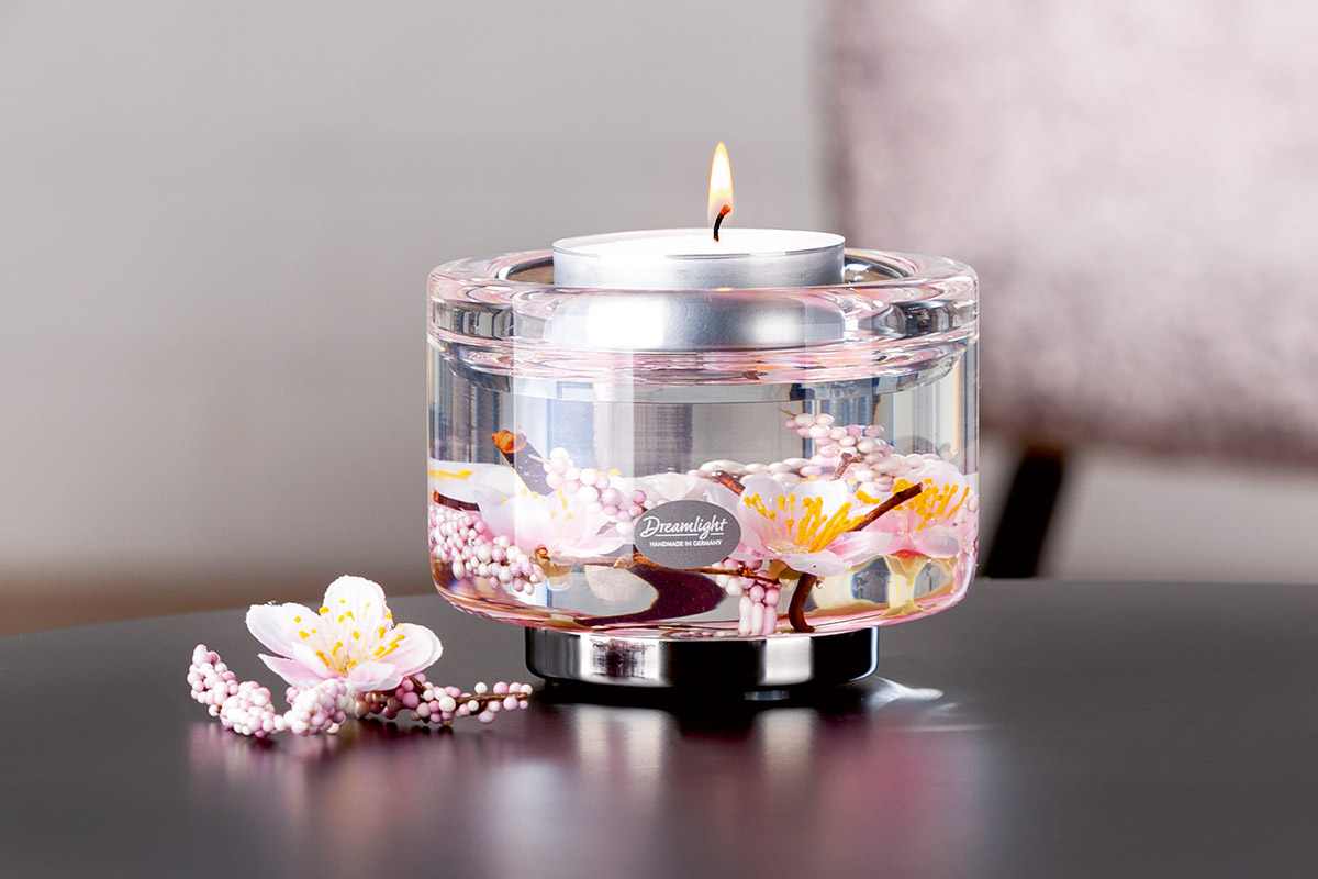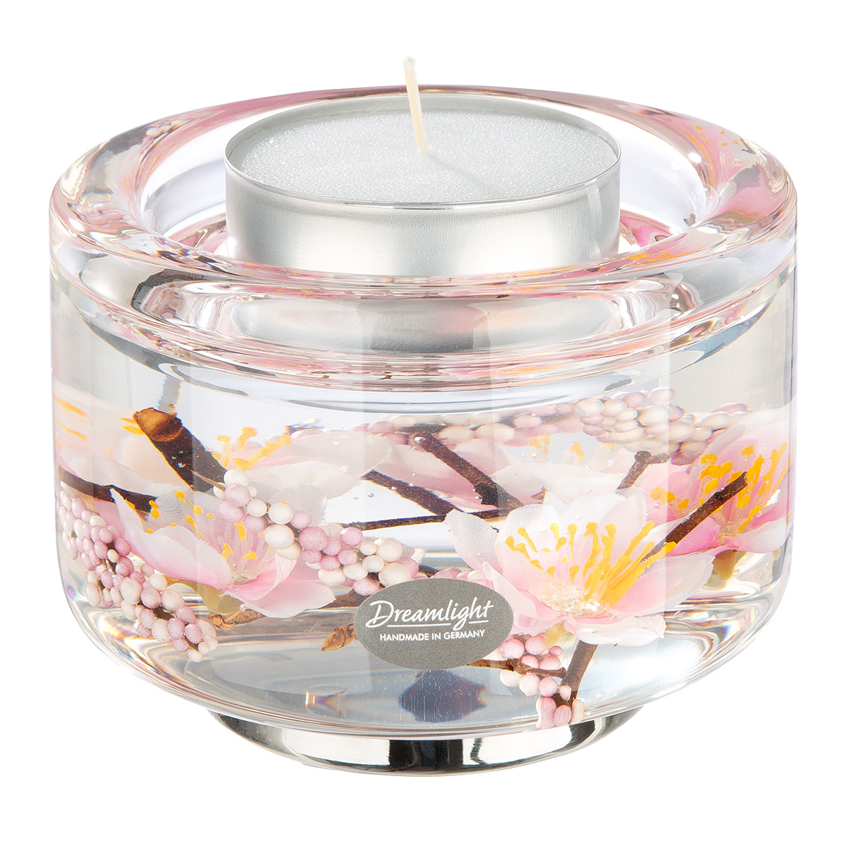 Dreamlight, Suport lumanare, Elora, Hanamy, Floare de cireș, Sticlă, trandafir, PU 4, H. 8,5 cm, D. 11 cm