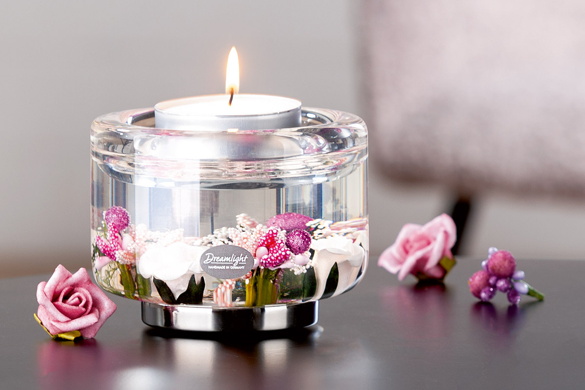Dreamlight, Suport lumanare, Elora, Little Rose, Sticla, roz, PU 4, H. 8,5 cm, D. 11 cm