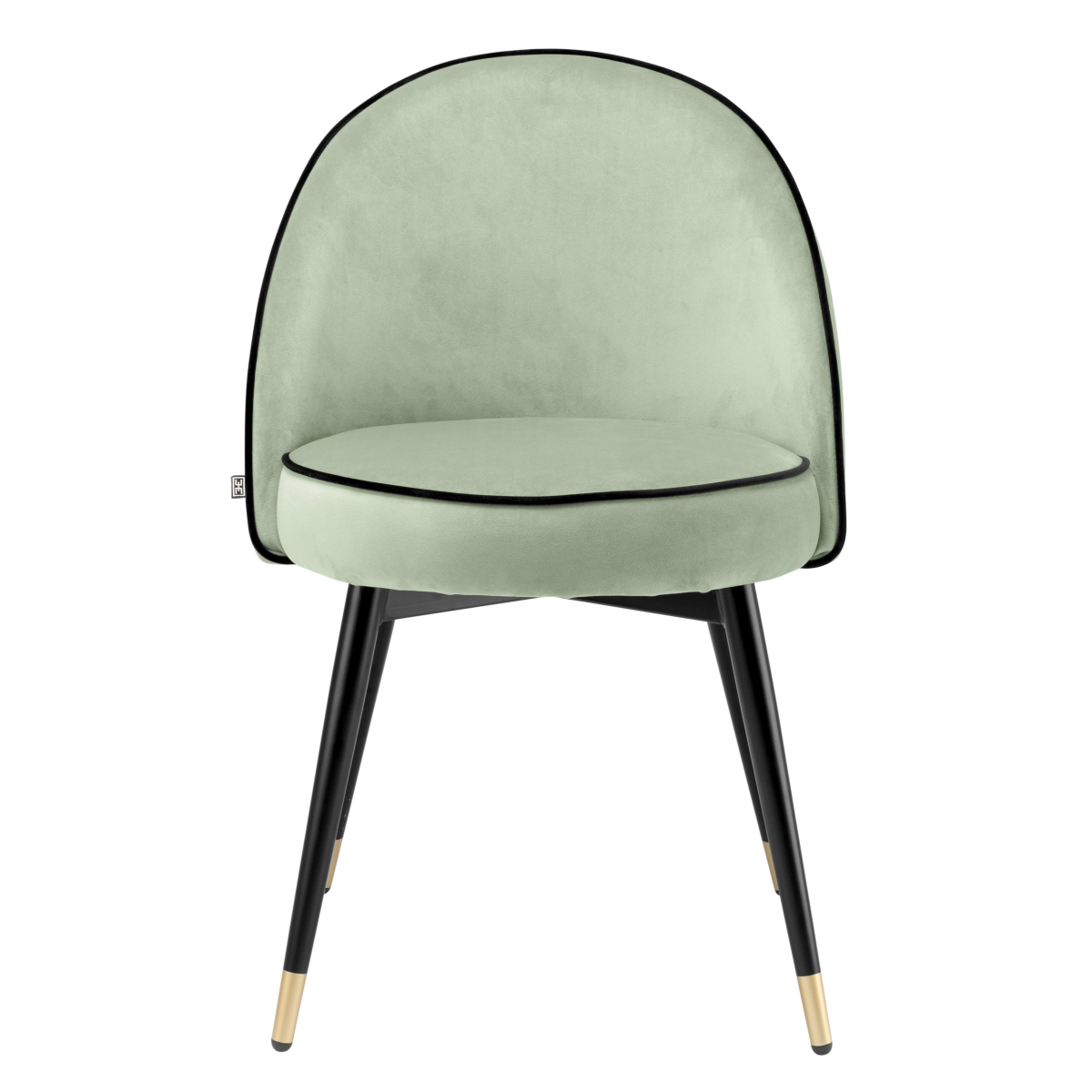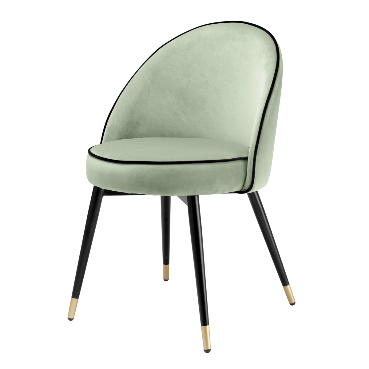 Detalii: picioare cu finisaj negru și alamă, Savona catifea verde fistic, roche black piping