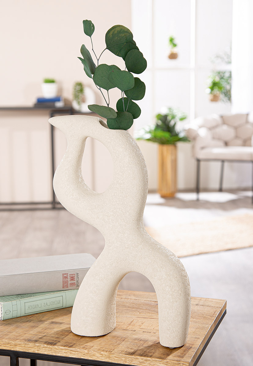 Vaza decorativa, Florence, Ceramica, gri deschis, PU 2, L. 10 cm, L. 28 cm, H. 40 cm