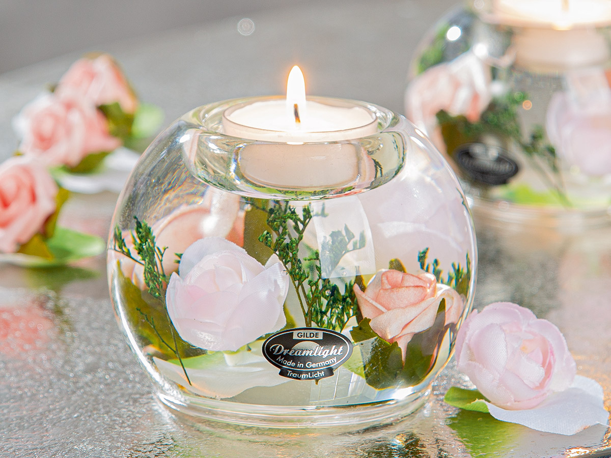 GILDE Dreamlight, Suport lumanare, Mercur, Isabella, Sticlă, trandafir, PU 6, H. 7 cm, D. 9 cm