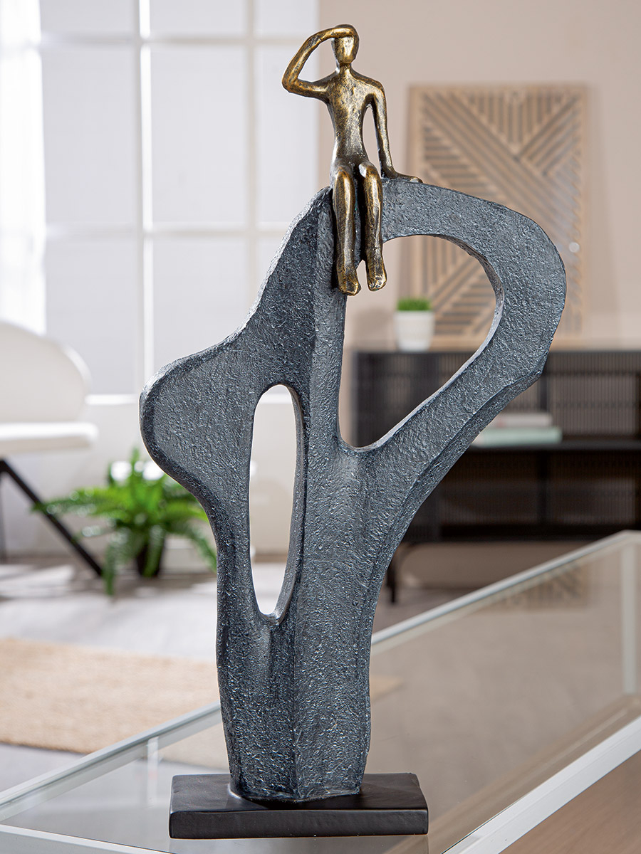 Sculptură, Vedere în depărtare, Motiv muntelui, alpinist, motiv bărbat, Polirășină, bronz, PU 1, L. 7,5 cm, L. 25 cm, H. 47 cm