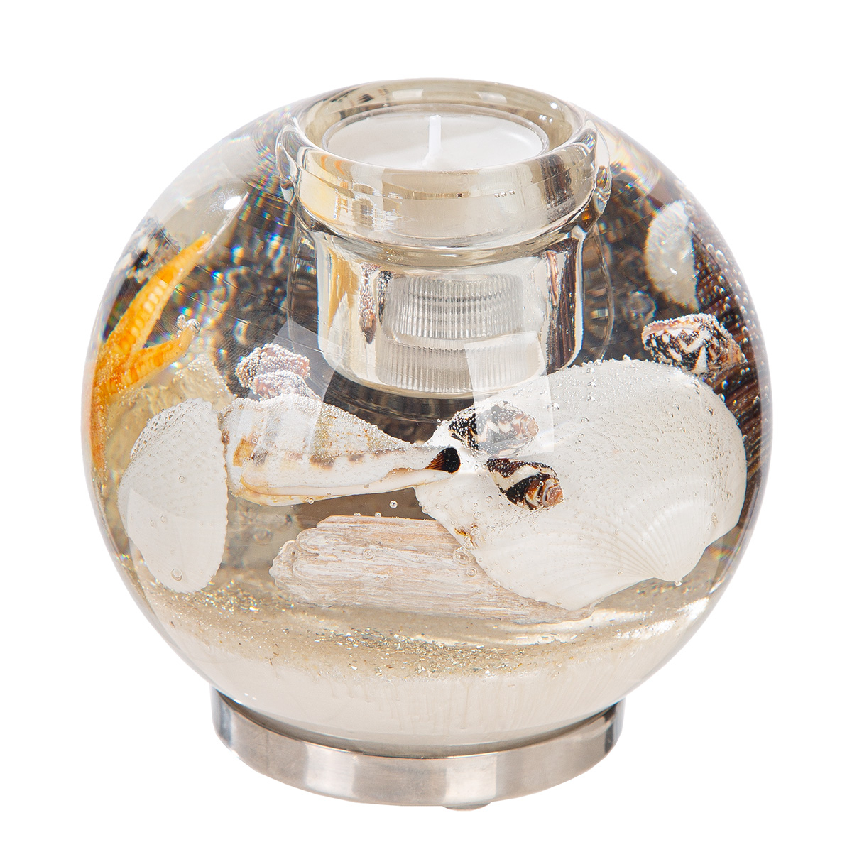 GILDE Suport lumânare Dreamlight (LED), Mercur Maxi, motiv scoică, sticlă, bej, PU 2, H 10 cm, D 11 cm