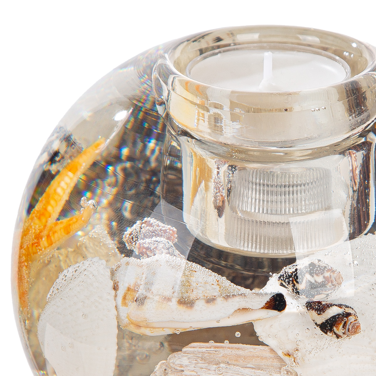 Suport lumânare Dreamlight (LED), Mercur Maxi, motiv scoică, sticlă, bej, PU 2, H 10 cm, D 11 cm
